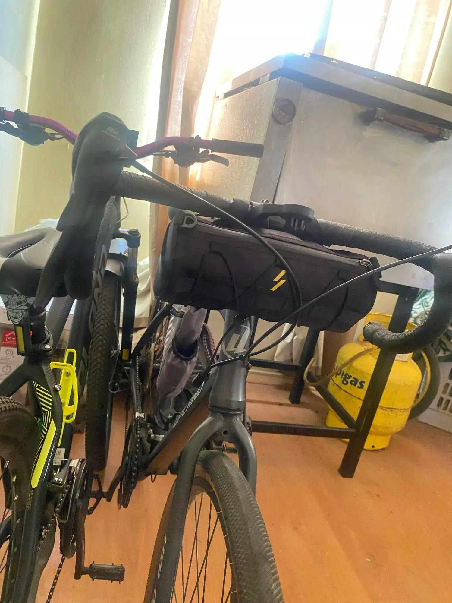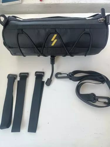 The handlebar bag is well finished. Made with good material. It came with three straps for fixing on the handlebar and steering wheel if necessary. I liked it a lot. Thank you!
